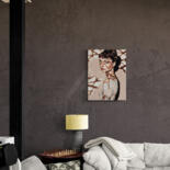 The model’s striking appearance, hairstyle, and elegant pose bring to mind the legendary movie stars of Hollywood's 'Golden Age,' notably figures like Audrey Hepburn.
