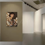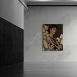A digital portrait executed in a style that combines photographic realism with painterly stylization. The image focuses on a female figure, presented in a half-length composition, with an intense, direct gaze.