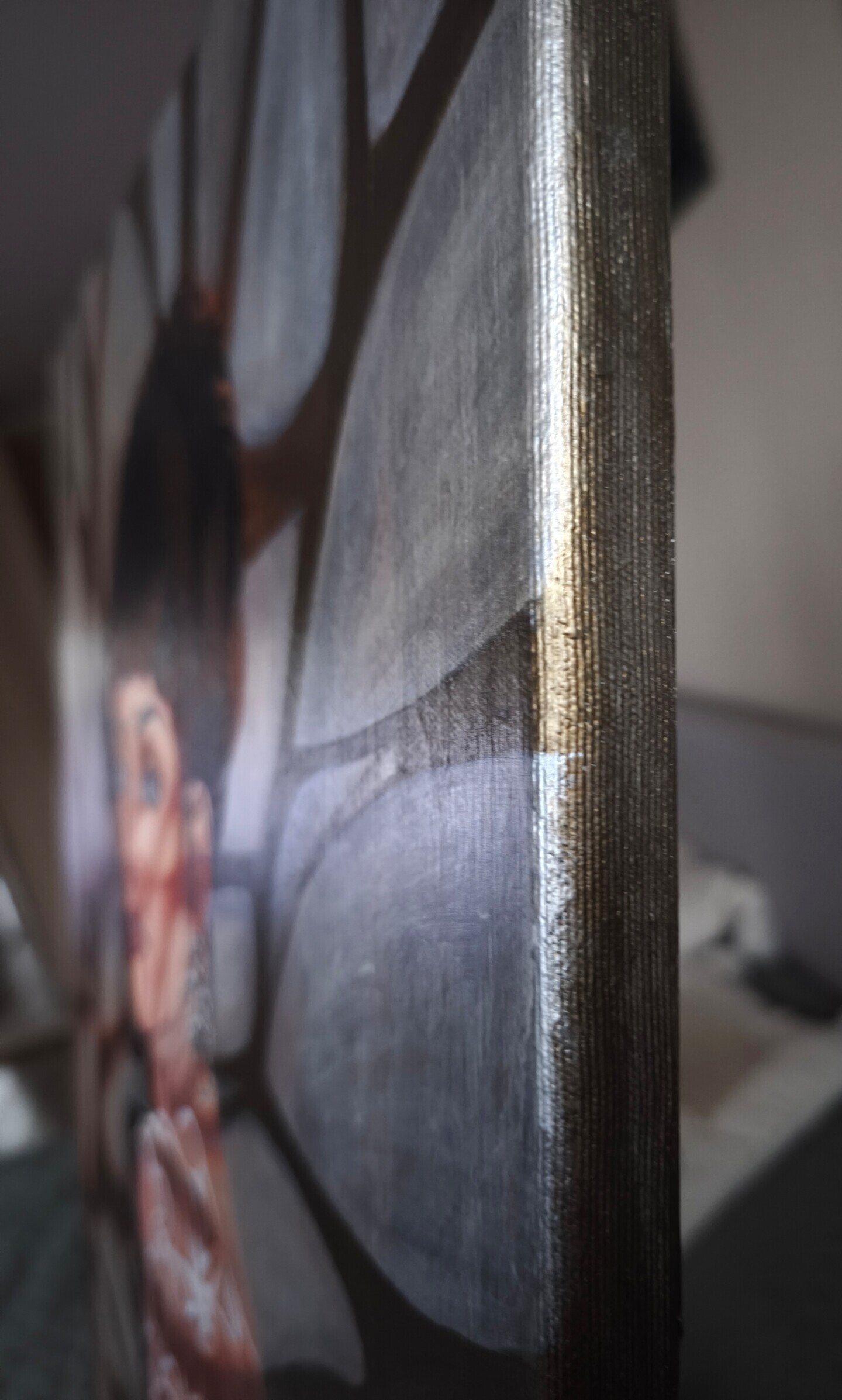 "Portrait of an Elegant Woman - Hyperrealisti Acrylic Painting in Golden Light and Lace Dress" is a unique acrylic-on-canvas work that captures the timeless grace and warmth of golden sunlight. The woman sits with her hair elegantly pulled back into a bun and wears an exquisite lace dress that shimmers softly in the shadows. Her pensive expression and serene pose create a sense of quiet strength and refined femininity.